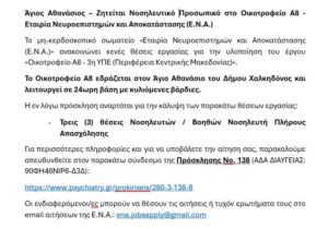 Ζητούνται Νοσηλευτές σε Οικοτροφείο – Εmail Αιτήσεων: ena.jobsapply@gmail.com – Τηλέφωνο Επικοινωνίας: 2316025683 – Για υποβολή αιτήσεων απευθυνθείτε στο: https://www.psychiatry.gr/prokirixeis/280-3-138-8