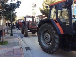 Τα πρώτα τρακτέρ περνώντας μέσα από χωράφια τους έφτασαν στον κόμβο Θέρμης ενώ στο σημείο βρίσκονται τρεις κλούβες της Αστυνομίας.