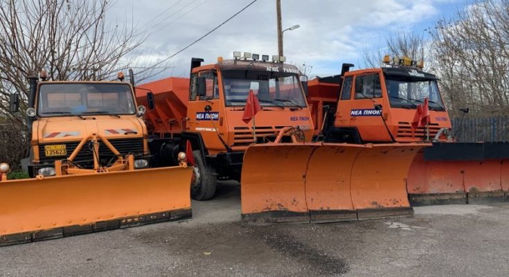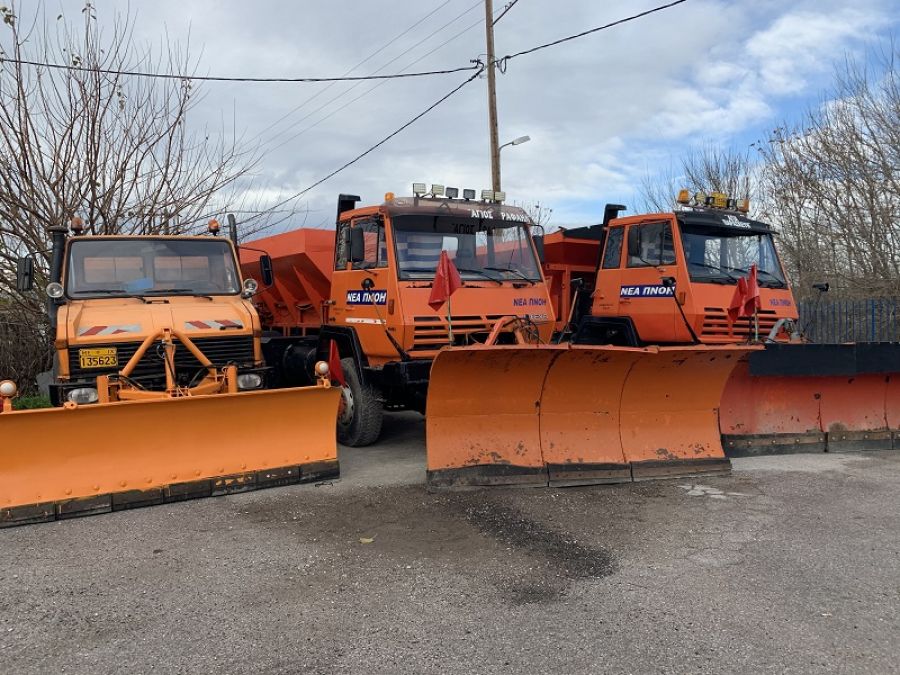 Τα μηχανήματα, τρία μεγάλα εκχιονιστικά με φτυάρια, πρόκειται να διατεθούν σε όποιες περιοχές αντιμετωπίσουν πρόβλημα με το χιόνι.