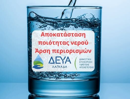 Η Δ.Ε.Υ.Α. Λαγκαδά ενημερώνει τους κατοίκους της Δημοτικής Κοινότητας Κολχικού και του οικισμού Δρακοντίου ότι αίρεται πλήρως η απαγόρευση χρήσης νερού που ίσχυε από τις 13 Ιουνίου 2024