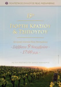 Ξεκινάει σε πέντε μέρες η 15η γιορτή τσίπουρου στην Νέα Μεσημβρία Χαλκηδόνος
