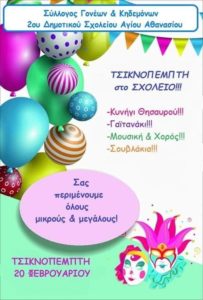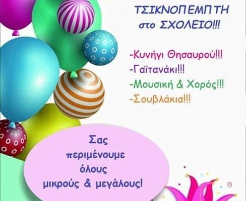 Μένοντας πιστοί στα “έθιμα” του σχολείου μας, ο Σύλλογος Γονέων και Κηδεμόνων του 2ου Δημοτικού Σχολείου Αγ. Αθανασίου θα τηρήσει και φέτος το έθιμο της ΤΣΙΚΝΟΠΕΜΠΤΗΣ ψήνοντας σουβλάκια στο χώρο του σχολείου μας!!!