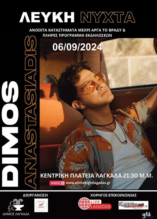 21.30 ΚΕΝΤΡΙΚΗ ΠΛΑΤΕΙΑ ΛΑΓΚΑΔΑ: Συναυλία Δήμος Αναστασιάδης