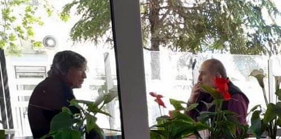Φωτογραφία «ντοκουμέντο» από την συνάντηση που είχαν σήμερα Παρασκευή 8/5/2020 στα Διαβατά οι δημοτικοί σύμβουλοι Χαλκηδόνος Κώστας Σαραφίδης ( αρχηγός της Ελάσσονος αντιπολίτευσης ) και ο εκπρόσωπος της παράταξης του δημάρχου κ Βασίλης Μπίκος