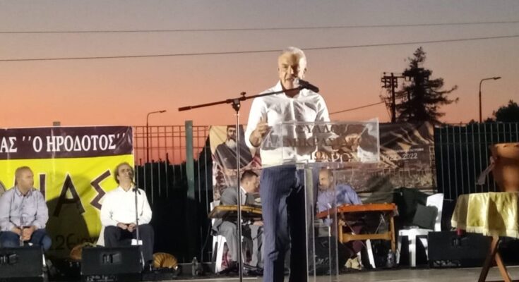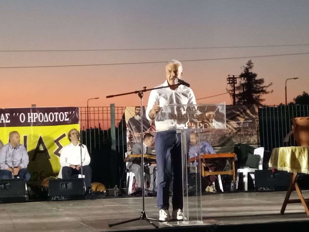 Αναφερόμενος στην ιστορία του πολιτιστικού συλλόγου «Ηρόδοτος» συνεχάρη τα μέλη του που εδώ και χρόνια κρατούν άσβεστη τη φλόγα του πολιτισμού στην περιοχή και παρά τα δύο χρόνια απαγορεύσεων λόγω κωρονοϊού πραγματοποιούν φέτος σειρά εκδηλώσεων.