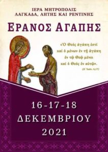 Κάθε χρόνο, λίγο πριν την Εορτή της κατά Σάρκα Γεννήσεως του Θεανθρώπου, θα πραγματοποιηθεί, η ωραία παράδοση της φιλανθρωπίας, ο καθιερωμένος «Έρανος της Αγάπης» από τις Ενορίες της Ιεράς Μητροπόλεώς μας.