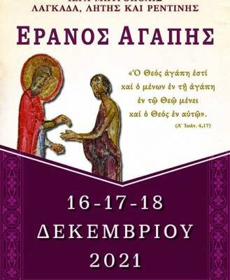 Σε μία εποχή δύσκολη, όπου συνεχώς αυξάνεται ο αριθμός των συνανθρώπων μας που έχουν μεγάλη ανάγκη βοήθειας και στήριξης, όλοι μαζί μπορούμε να προσφέρουμε από το περίσσευμα της καρδίας μας τον καρπό της αγάπης μας, προκειμένου να καλυφθούν όσο είναι δυνατόν, όλες οι ανάγκες των ενδεών και πασχόντων αδελφών μας, και μέσω αυτής να ζήσουμε αυτήν την ξεχωριστή πνευματική επικοινωνία της Αγάπης.
