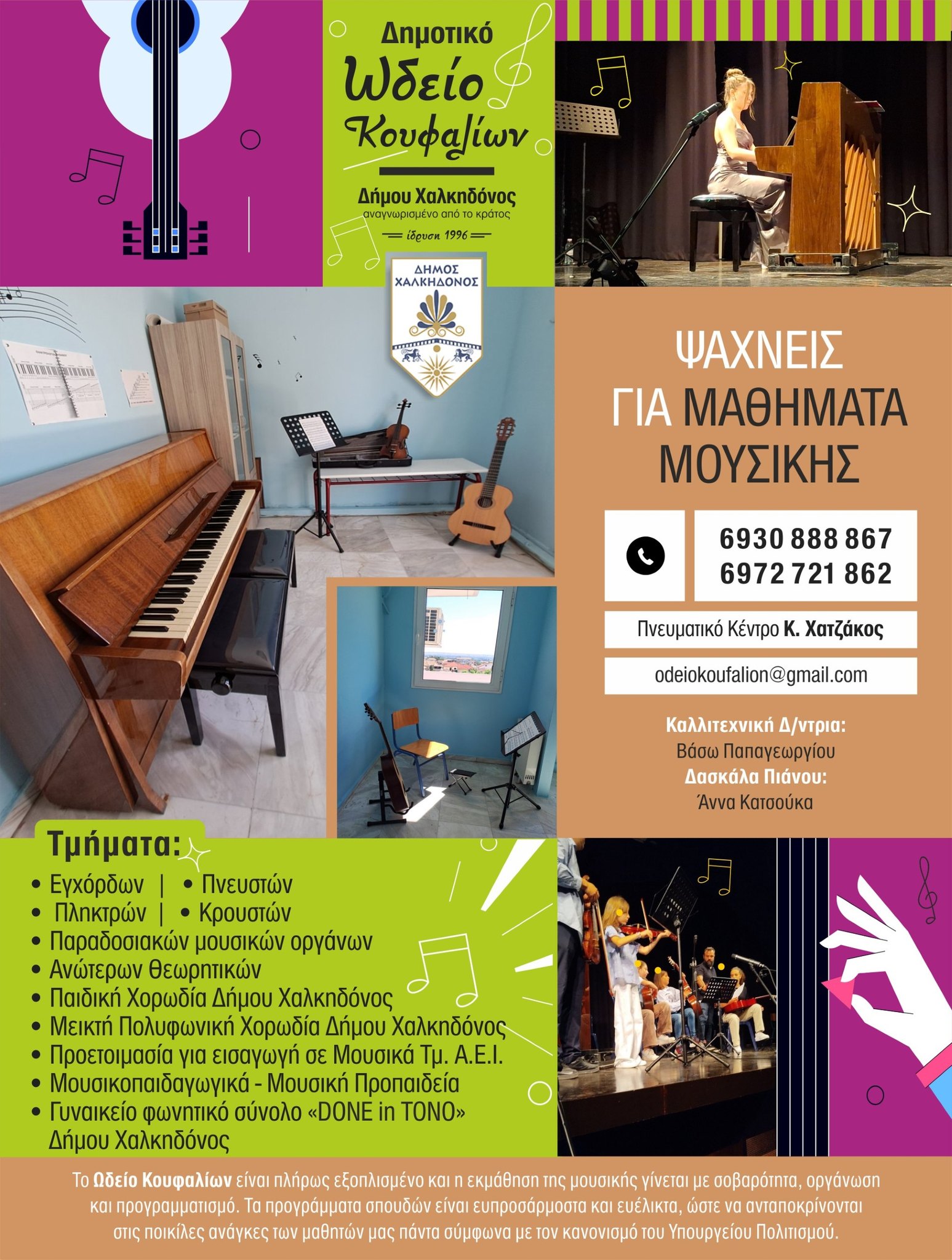 Στο Δημοτικό Ωδείο λειτουργούν επίσης τα παρακάτω τμήματα: