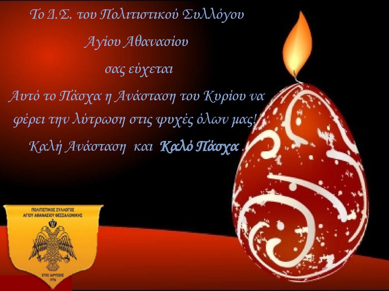 ΕΥΧΕΣ ΠΑΣΧΑ 2020 : Πολιτιστικός Σύλλογος Αγίου Αθανασίου Χαλκηδόνος