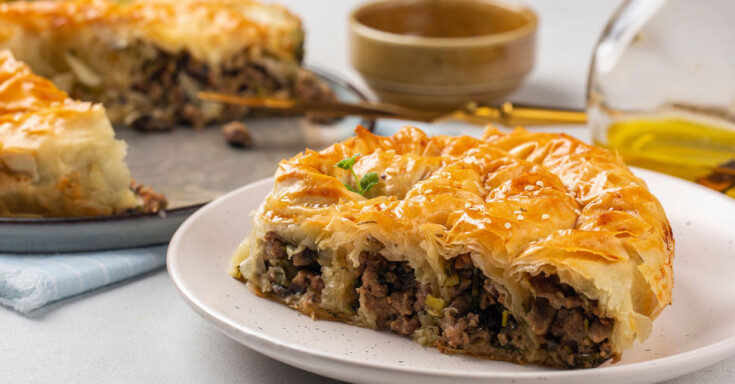 Αυτή τη φορά τα κλείνουμε ανάμεσα σε τραγανό φύλλο κρούστας και ενισχύουμε τη γεύση τους με μπόλικο τριμμένο τυρί για μια πραγματικά ακαταμάχητη πίτα.