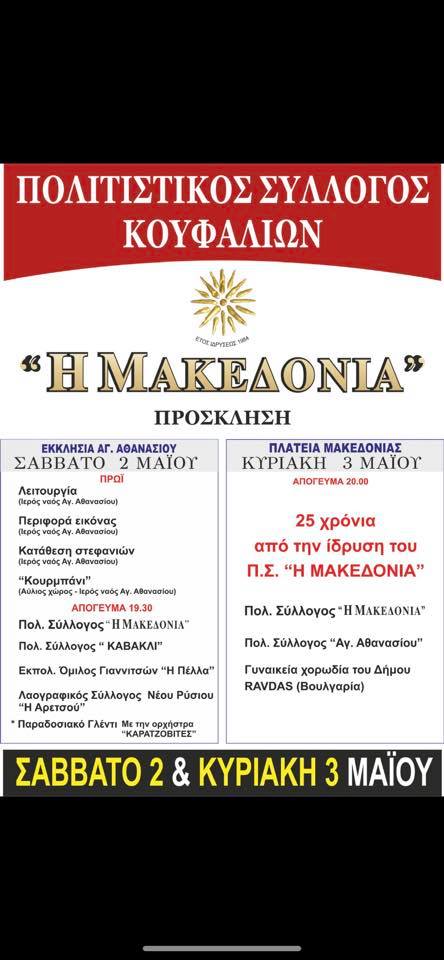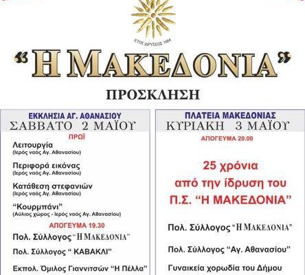 Αγαπητοί φίλοι, η σημερινή μέρα είναι πολύ σημαντική και ιδιαίτερη για το σύλλογό μας! Πολλά χρόνια τώρα στις 2 Μαΐου τιμούμε την Ανακομιδή των Λειψάνων του Αγ. Αθανασίου! Αρχίζουμε με την περιφορά της εικόνας του Αγίου και στη συνέχεια μοιράζουμε κουρμπάνι στον κόσμο και ακολουθούν και πολιτιστικές εκδηλώσεις με τη συμμετοχή χορευτικών τμημάτων!Φέτος για πρώτη φορά οι εκδηλώσεις αυτές δεν θα γίνουν γεγονός που μας θλίβει!Δίνουμε όμως υπόσχεση του χρόνου, που ο covid-19 θα αποτελεί θλιβερή ανάμνηση, να συναντηθούμε σε ένα γλέντι με πολύ κέφι και μουσική!