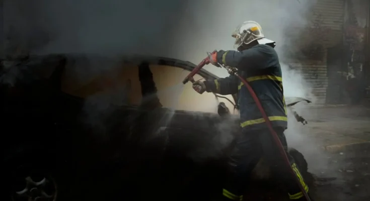 Για την κατάσβεση επιχείρησαν έξι πυροσβέστες με δύο οχήματα.