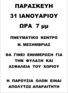 Μεσημβρία : Ενημέρωση για την φύλαξη του χωριού !