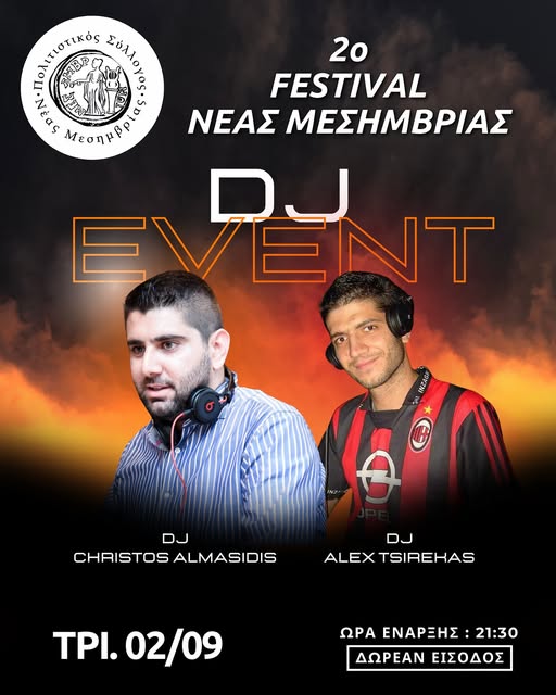 Το 2ο Festival Νέας Μεσημβρίας φέρνει τους DJ Almasidis & DJ Alex Tsirekas για μια βραδιά γεμάτη μουσική, ρυθμό και χορό!