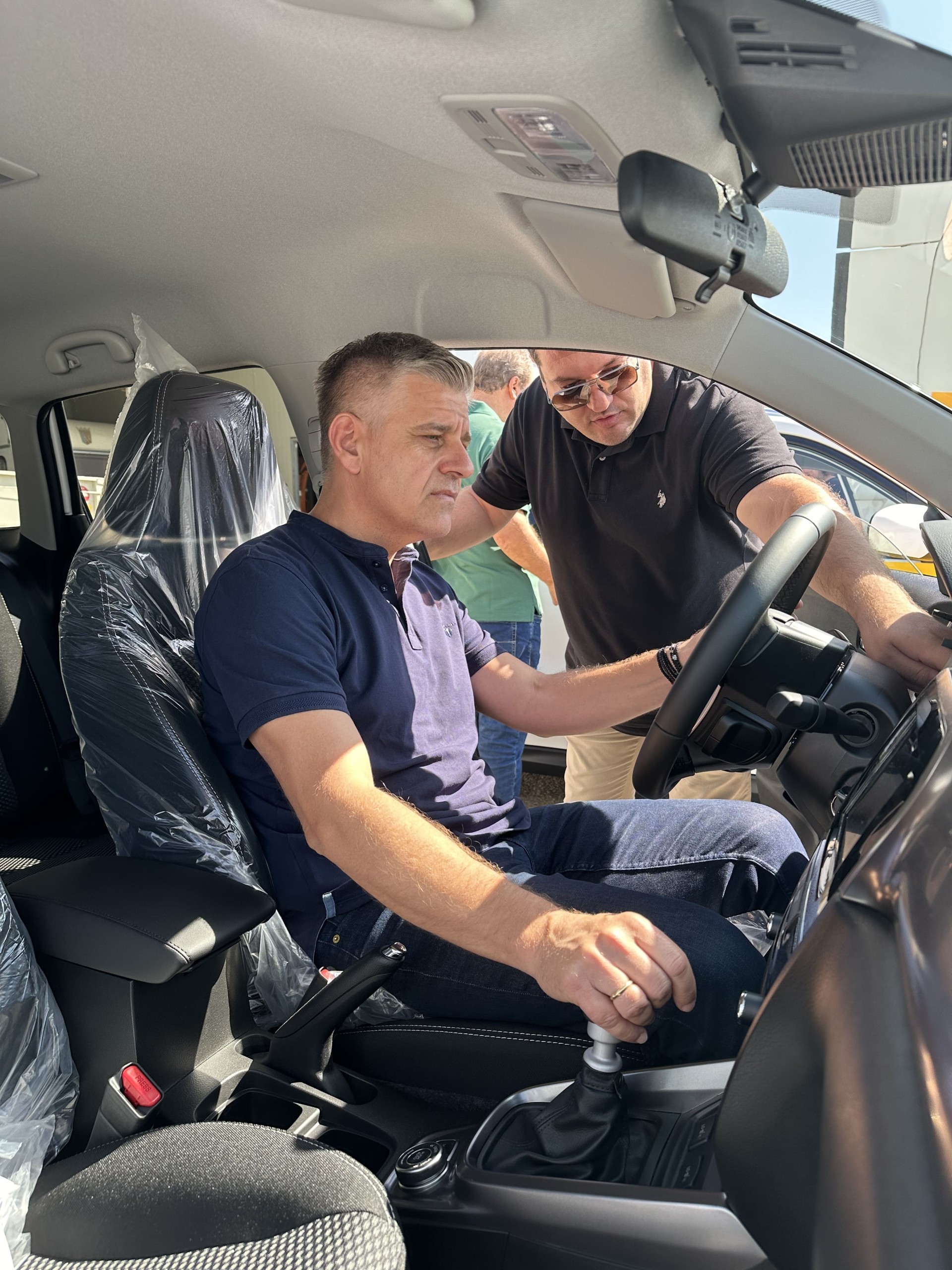 Ο κ. Γιουτίκας ενημερώθηκε από τους υπεύθυνους του εργοταξίου, για τις πρόσθετες δυνατότητες που προσφέρουν, το νέο φορτηγό μεταφοράς βαρέως τύπου μηχανημάτων (τράκτορας) και τα δύο νέα αυτοκίνητα μεταφοράς υλικών και προσωπικού. Όπως του επισήμαναν, με τα νέα οχήματα στη διάθεσή τους, θα διευκολυνθεί σημαντικά η εργασία τους, κατά την κατασκευή έργων στους 14 Δήμους της Θεσσαλονίκης.