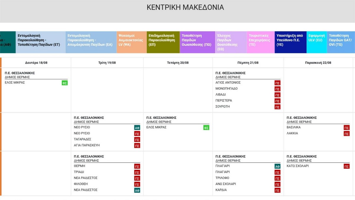 Αναλυτικά το πρόγραμμα των ψεκασμών από Δευτέρα 18 Αυγούστου έως και την Παρασκευή 22 Αυγούστου 2025 έχει ως εξής: