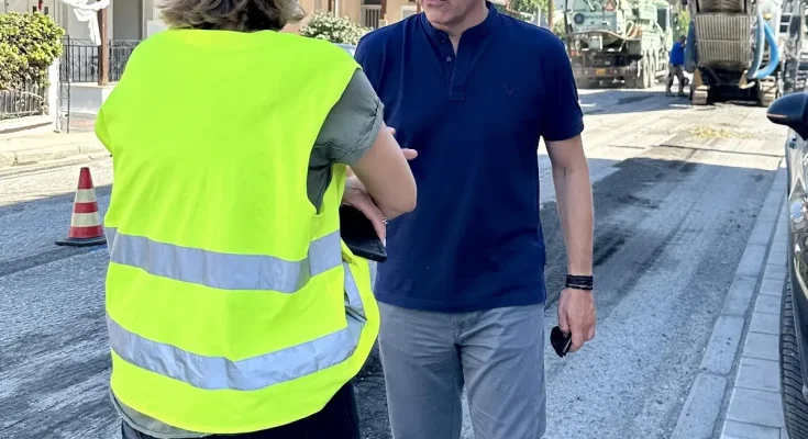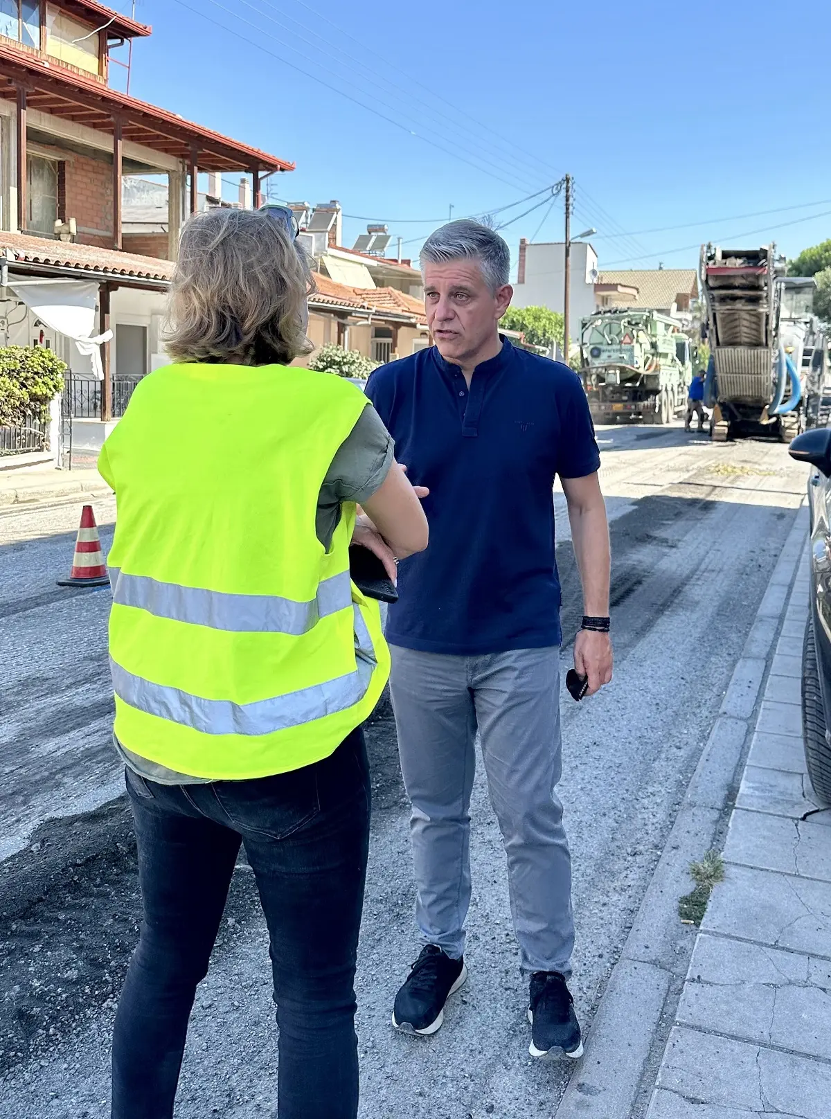 Ο αντιπεριφερειάρχης Θεσσαλονίκης, Κ. Γιουτίκας, που βρέθηκε σήμερα επί τόπου, ενημερώθηκε από τους μηχανικούς της Υποδιεύθυνσης Τεχνικών Έργων της Μητροπολιτικής Ενότητας Θεσσαλονίκης, για την εξέλιξη των εργασιών, ασφαλτόστρωσης και αποκατάστασης της οδού.