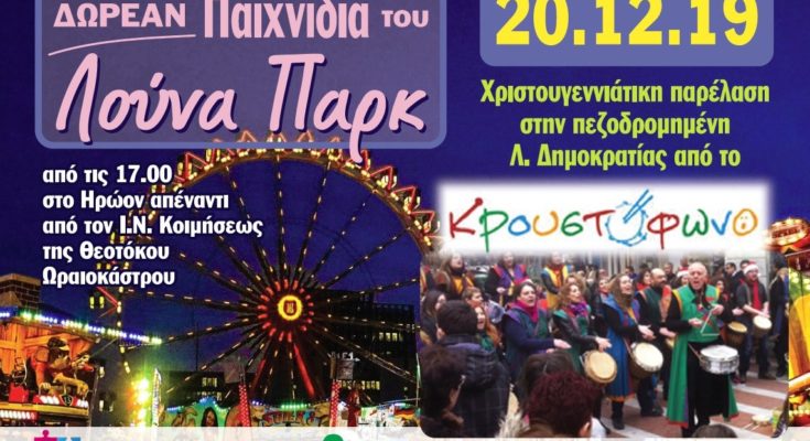 Την Παρασκευή 20 Δεκεμβρίου 2019 οι χριστουγεννιάτικες εκδηλώσεις στο Ωραιόκαστρο συνεχίζονται.