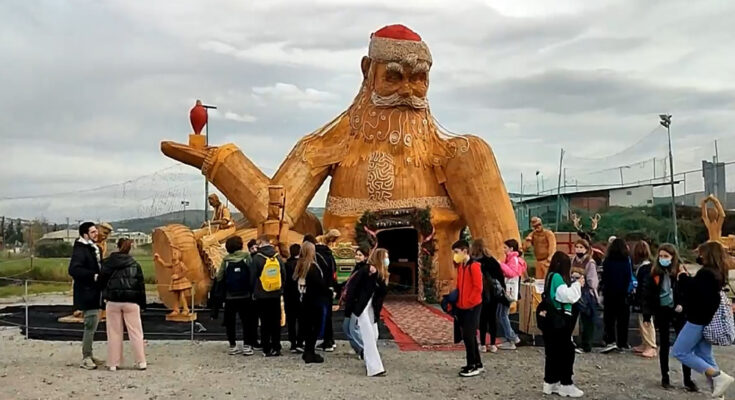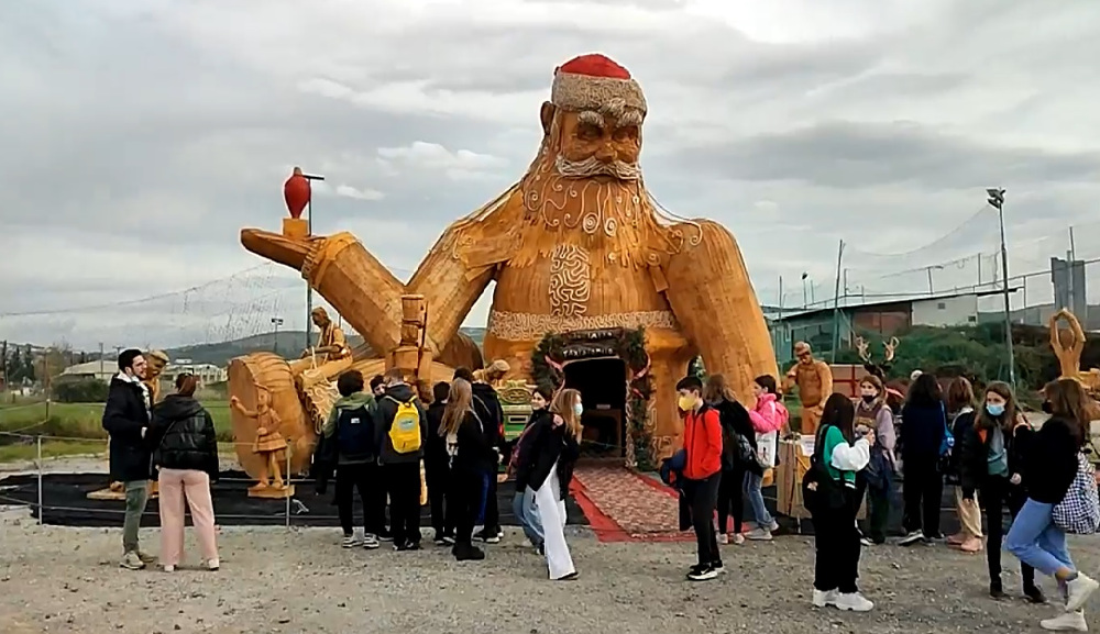Εντυπωσιακή κοσμοσυρροή συγκεντρώνει κάθε μέρα ο μεγαλύτερος ξύλινος Άγιος Βασίλης του κόσμου που βρίσκεται στον τεχνοχώρο πολιτισμού «NOUVELLE» (6ο χλμ Ωραιοκάστρου-Θεσσαλονίκης), που με ύψος 9 μέτρων και μήκος 15 μέτρων καθηλώνει τους επισκέπτες με το μέγεθος του.