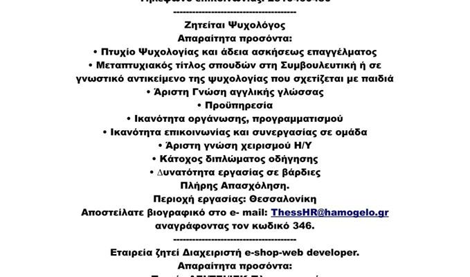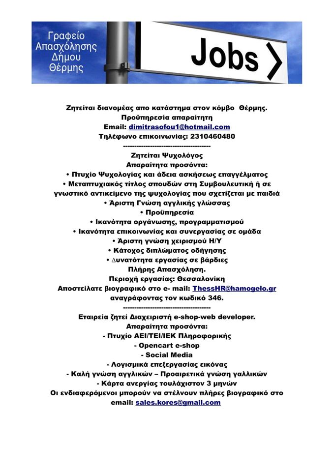 Από το γραφείο απασχόλησης θέσεις εργασίας στο δήμο Θέρμης