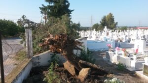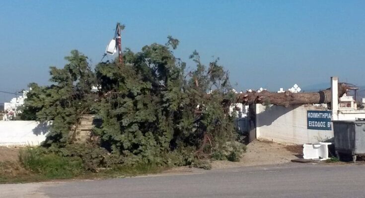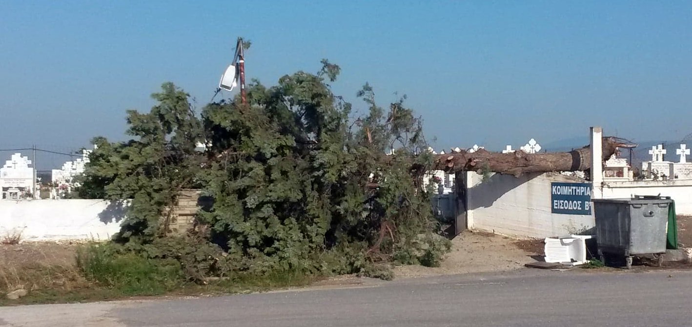 Θυμίζουμε ότι 5 μήνες μετά την κοπή των δέντρων είχε ξεριζωθεί από δυνατό μπουρίνι ένα τεράστιο κυπαρίσσι στην είσοδο των Κοιμητηρίων Γέφυρας ( φώτο) και από θαύμα δεν υπήρξαν θύματα.